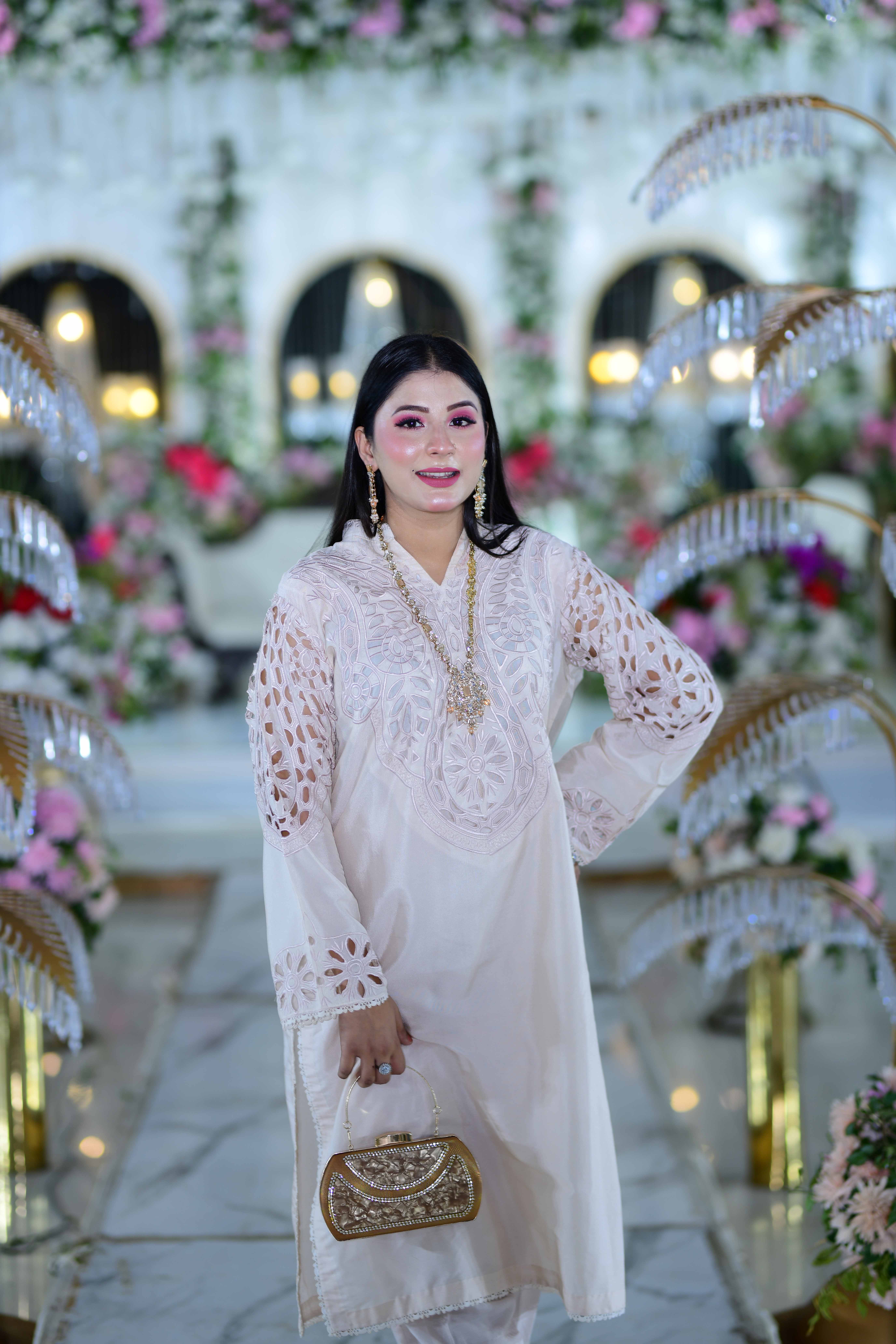 Elegance in Ivory – Premium Pure Tassel Silk with Bore Work